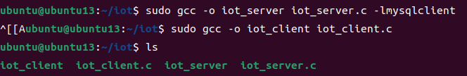 1. iot_server, iot_client ๋น๋ ๊ฒฐ๊ณผ
