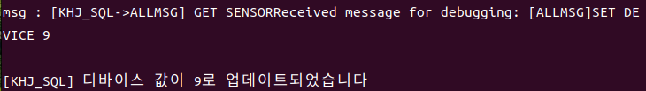 - ํด๋ผ์ด์ธํธ๊ฐ "SET DEVICE" ๋ฉ์์ง๋ฅผ ๋ณด๋ด๋ฉด MySQL ๋ฐ์ดํฐ๋ฒ ์ด์ค์์ ํด๋น ๋๋ฐ์ด์ค ๊ฐ์ ์ ๋ฐ์ดํธ