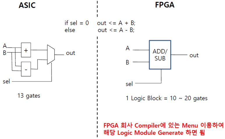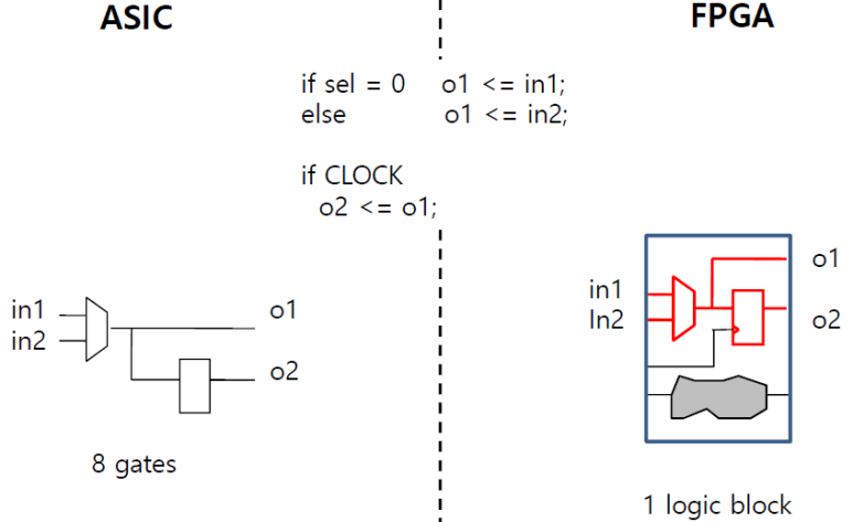 FPGA(Field Programmable Gate Array)를 사용하여 개발 시 논리 게이트 배열을 사용하여 개발이 이루어지며